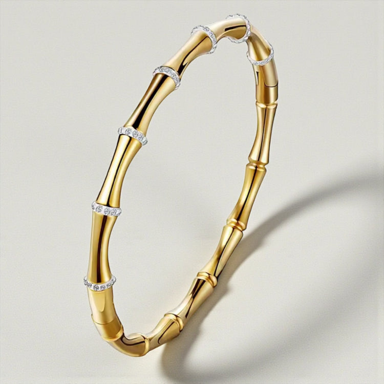 This elegant bangle is inspired by the organic lines of bamboo, featuring softly contoured segments finished in a high-polish gold tone.