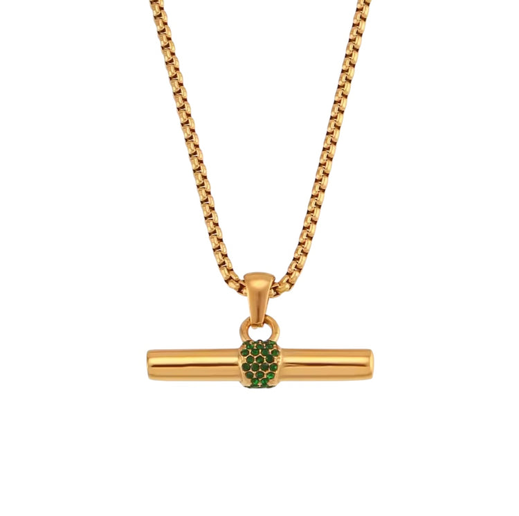 Beautiful T Bar pendant with delicate clear green crystals dotted around the centre in a circular shape.