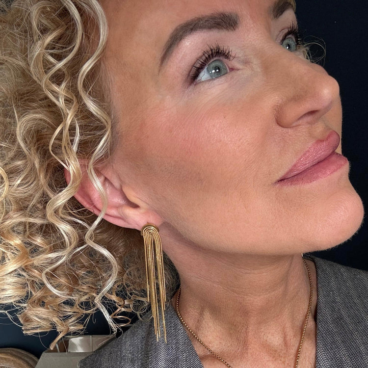 Make a statement with our Gold Cascade Fringe Earrings, designed to catch the light with every movement.
