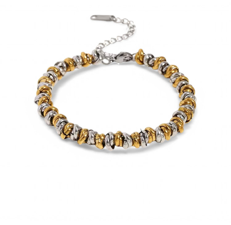 Bracelet covered in lots of tiny gold and silver rings (non edible!)